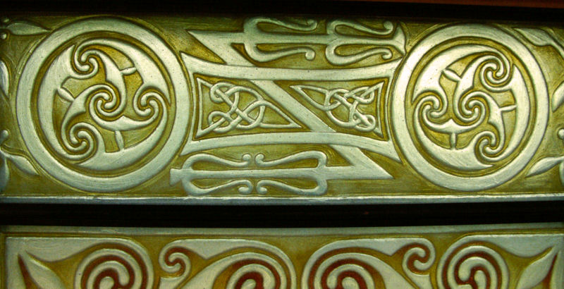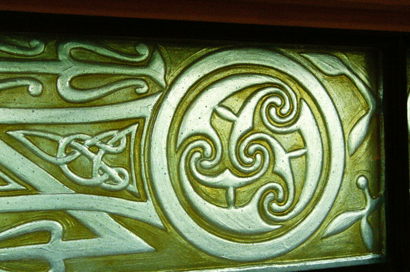 Since Barry made his stone, the base section of the original stone had been uncovered and I was able to see the original carving and figures in this area. I redesigned the side borders to work with this section.