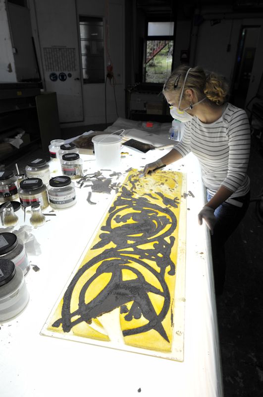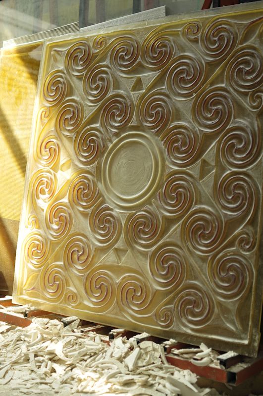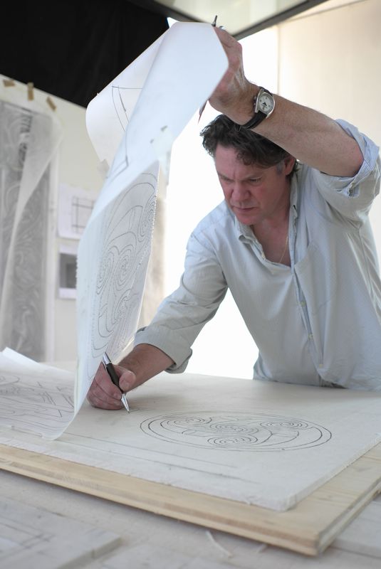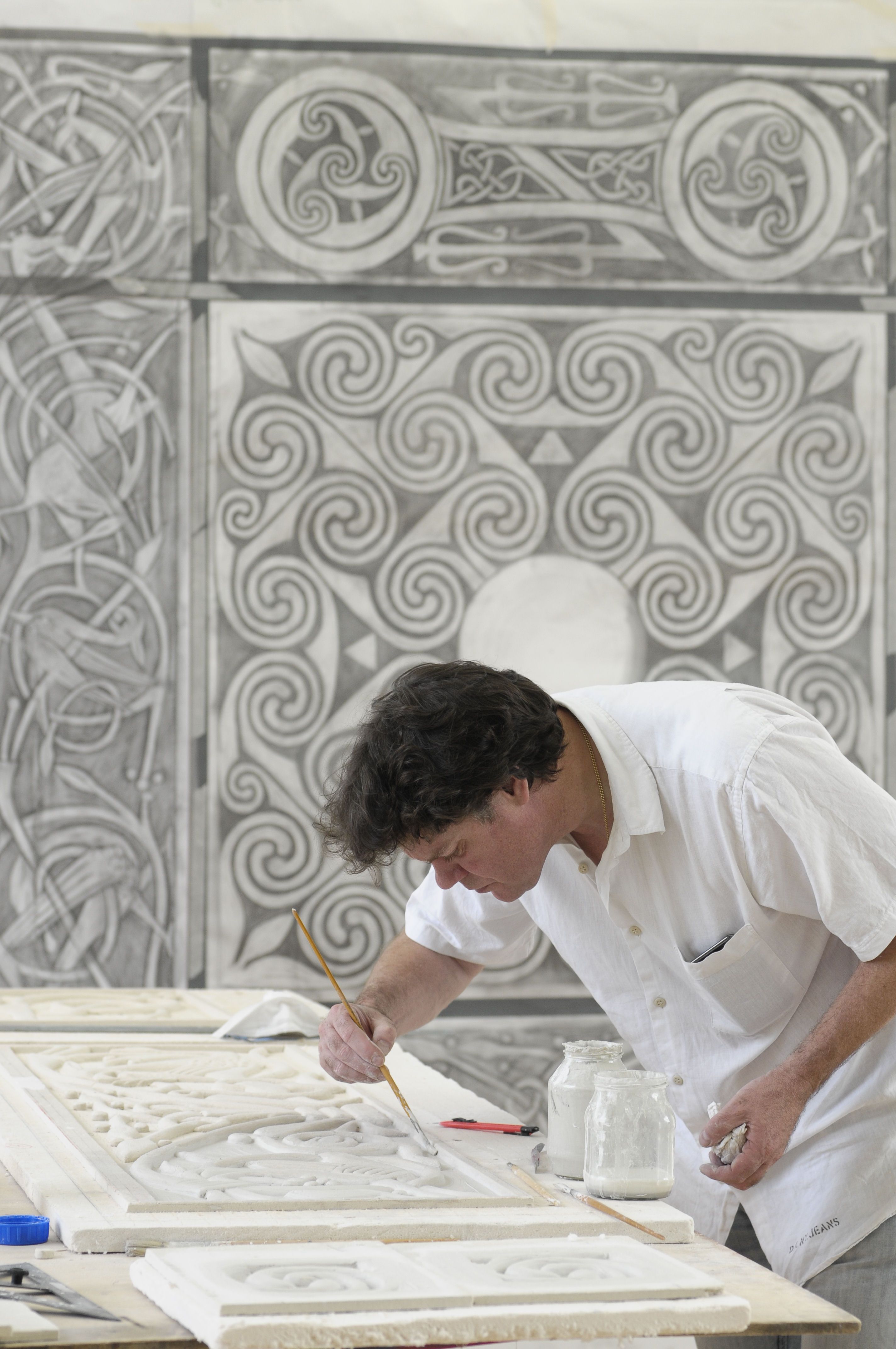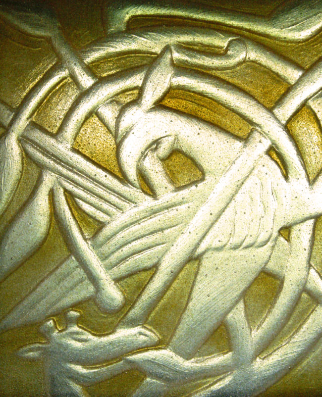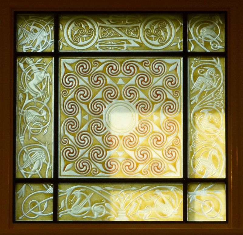 The stone is a relief sculpture, so it seemed appropriate that the window should be too. I explored other artistic and technical possibilities but the relief was the best solution.