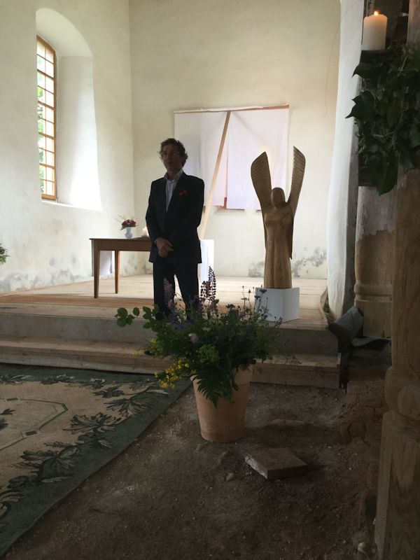 I was asked to produce designs. Herr friedrich had seem a project that I had designed for another German church and asked me to make something suitable for the church in Hermannsacker. I produced a series of designs using an abstract approach that I had developed. The concept is called "controlled spontaneity". We had a meeting in the church where we looked at the various options settling on my own preferred design.