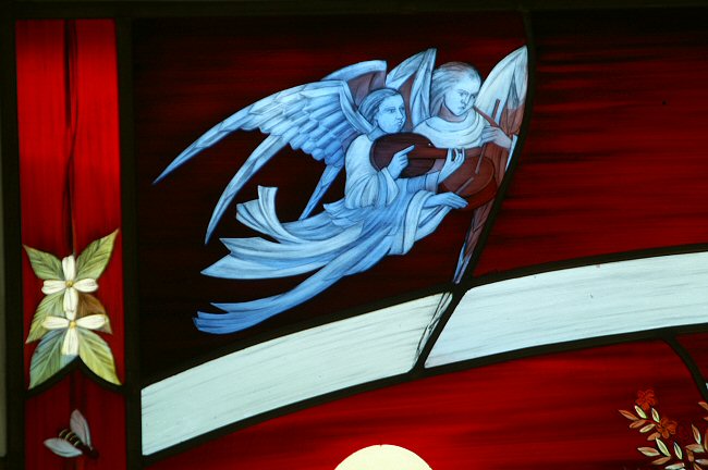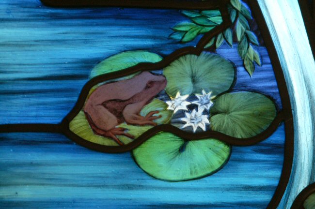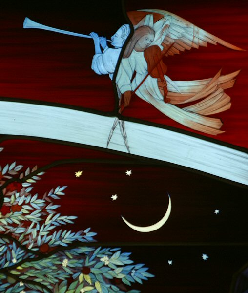 This seemed an appropriate theme and I began with this as the main subject for the window. Several of the motifs and qualities that interested me in the tapestry have been used in the window.