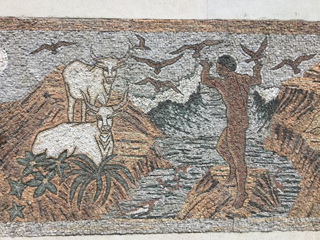 This is the mosaic that was made for the Kericho Cathedral. It is on the theme of the Garden of Eden. It is made of natural stone. it is 20Mt long and 2Mt high. This extraordinary work was undertaken by with Githaka Karuri and his team.