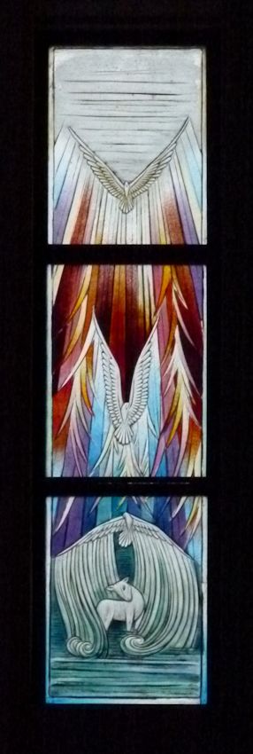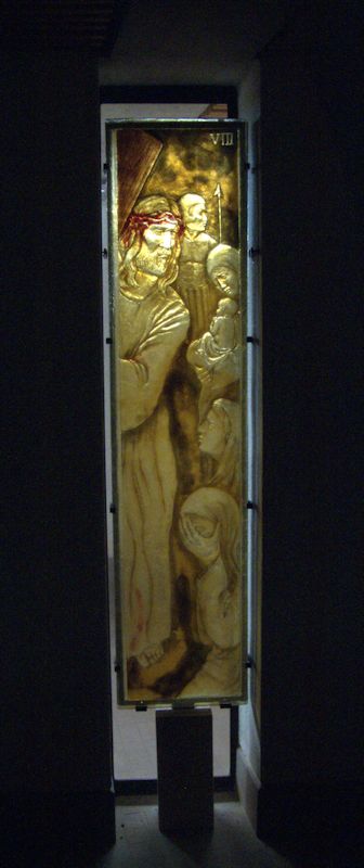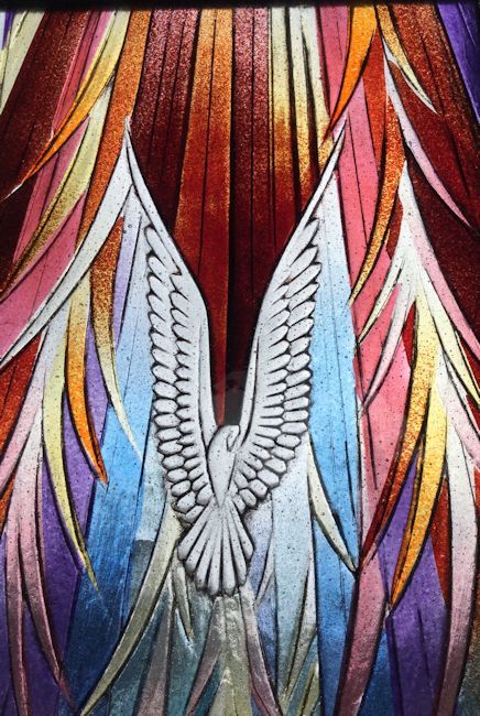 The cathedral has two sets of steel doors, there are relief sculpted bronze panels inserted into these doors. The method of creating the art work for these panels is similar to what is required to make the glass relief sculptures.