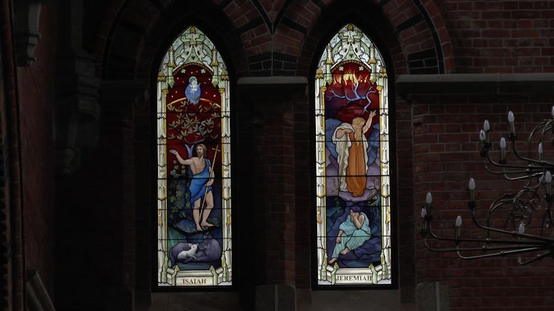 In the lower row of windows, I suggest the major Old Testament Prophets: Isaiah, Jeremiah, Ezekiel and Daniel.