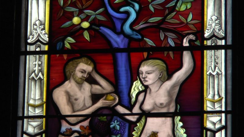 At the base of the St. John window, there is a snake emerging from a goblet, an allusion to the miracle of St. John drinking poisoned wine.