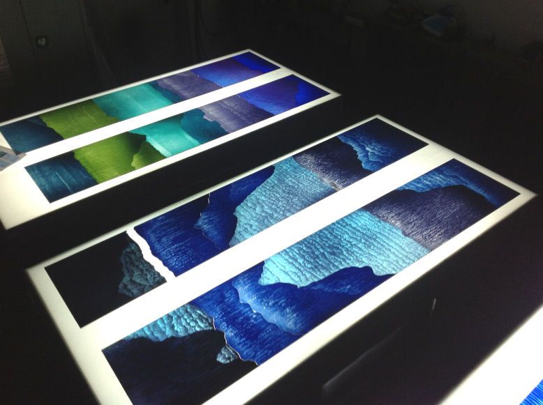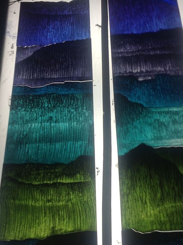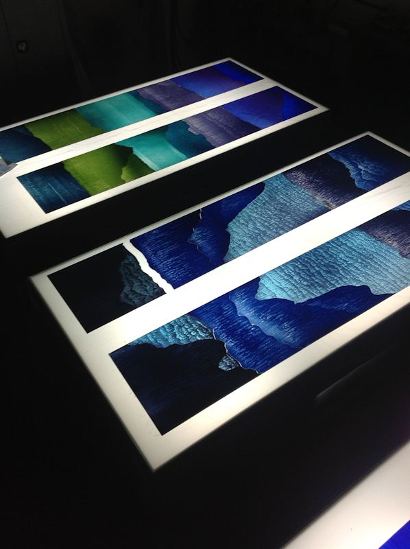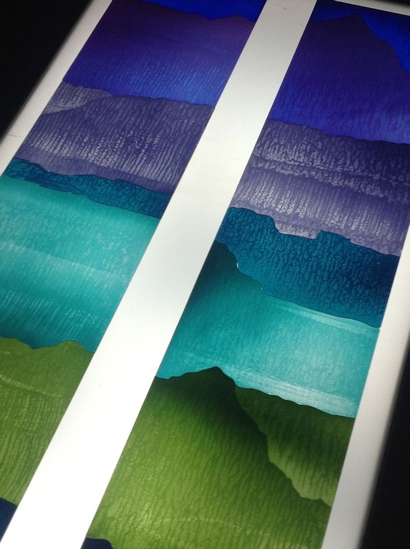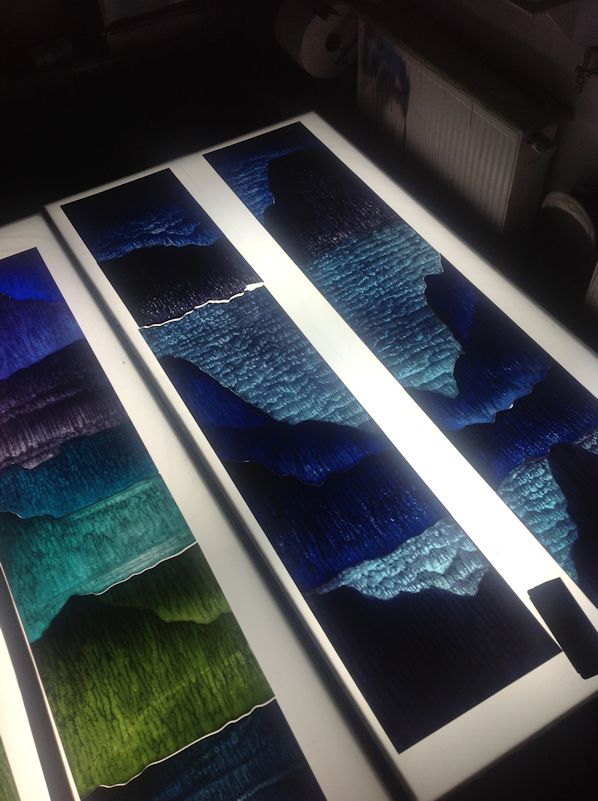 Technique - Extensively acid etched and traditional glass painting - digitally printed and spray painted (large horizontal panel)