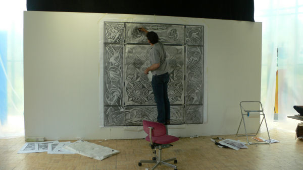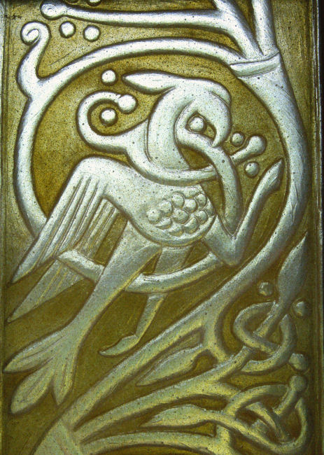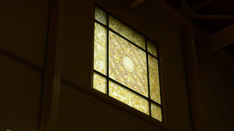 The stone is a relief sculpture, so it seemed appropriate that the window should be too. I explored other artistic and technical possibilities but the relief was the best solution.