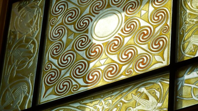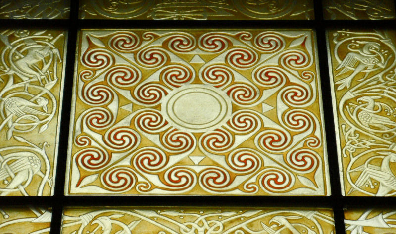 The theme of the window was to be the signet used by Glenmorangie. This in turn is derived from the Hilton of Cadboll pictish stone.