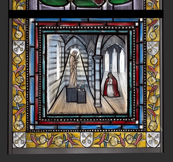 These borders are supported on either side by a sub -border. A glazing border on the outside and a dotted border within. Again, this is referencing the existing windows in the Baptistry.