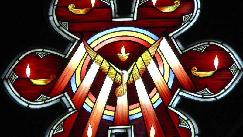 It seems appropriate in this set of windows to have the presence of the Holy Spirit within each scene.